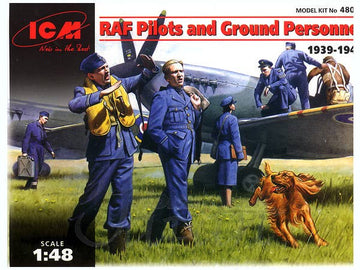 ICM 1/48 RAF Pilots and Ground Personnel (1939-1945) (7 figures - 3 pilots, 3 mechanics, 1 WREN member, and dog figure)