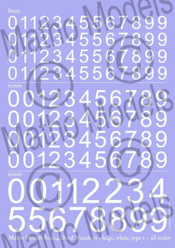 Matho Decal Numbers - Large, White, Type 1- all acales