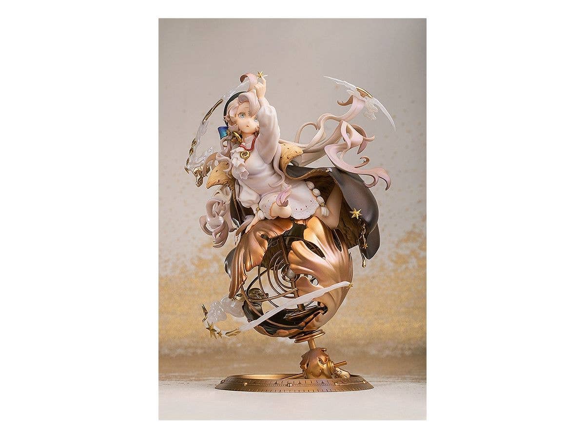 “Guided by the light”The British Museum’s "Equinoctial Dial" has been transformed into "Time Compass," a new scale figure! The relic has been transformed into a beautiful girl designed by illustrator REI. The girl, brimming with an insatiable curiosity as she peers at the stars, has been faithfully created in figure form with delicate, soft modeling. Her curious expression, dynamic pose and seemingly weightless twintailed hairstyle and cape have been carefully captured. The base of the figure is a movable ring inspired by the original relic. Be sure to add her to your collection!Painted plastic 1/7 scale complete product with stand included. Approximately 220mm in height.